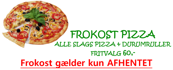 Mejrup Pizzeria FROKOST PIZZAFRA Kl 11:30 TIL 15:00 I RINGER – VI BRINGERUDBRINGNING FRA 17:00 – 19:45 RING OG BESTIL PÅ97 42 23 23 VELKOMMEN TILMejrup Pizza & GrillHos os, får du lækker mad serveret med et smil.Menukortet er fyldt med lækre retter, og du kan blandt andet vælge mellem Pizza og Grill retter.Maden bliver tilberedt med sans for kvalitet og den gode smag, og vi stræber til hver en tid efter, at du får en god madoplevelse.Når vi laver mad til vores kunder, lægger vi vægt på kvalitet, service og renlighed.Vi tilbyder take away til afhentning og udbringning.